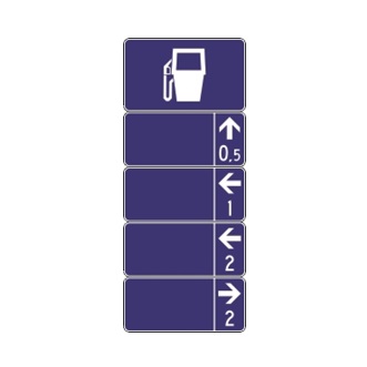 Le panneau « Acheminement » (I-570-2) indique l’itinéraire à suivre pour atteindre les établissements signalisés sur l’autoroute.