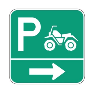 Le panneau « Aire de stationnement » (I-350-11) indique aux motoquadistes la présence d’une aire spécialement conçue pour stationner les VHR.
