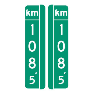 La plaquette « Repère kilométrique » (I-260-7) indique à l’usager de la route la distance parcourue à partir du point d’origine de la route sur laquelle il circule.