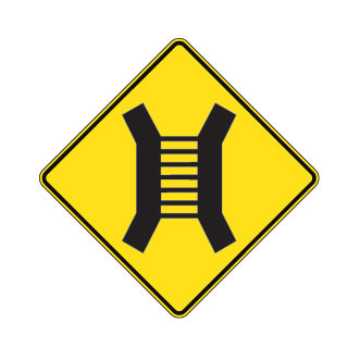 Le panneau D-340-2 indique le passage étroit composé d’un tablier métallique formé de tubes espacés les uns des autres.