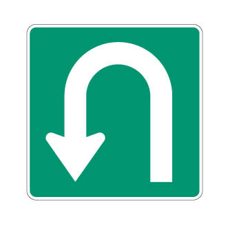 Le panneau «Demi-tour» (I-380) indique la présence d’un aménagement dans un terre-plein permettant exclusivement les manoeuvres de demi-tour.