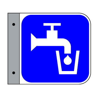 Le panneau «SL-3000» est installé à l’emplacement d’un robinet pour y indiqué que l’eau de celui-ci est potable.