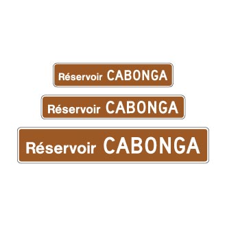 Le panneau d’élément hydrographique « Réservoir » (I-210-4) indique le nom d’un réservoir figurant sur la Carte routière du Québec.