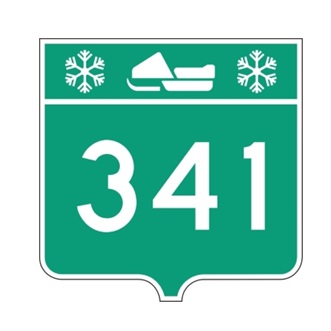 Le panneau d’identification des sentiers de VHR (I-121-1) indique aux motoneigistes le numéro du sentier de VHR.
