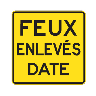 Le panneau « Nouvelle signalisation – Feux enlevés » (D-40-6) indique un changement dans la régulation de la circulation à un carrefour. Il doit être installé pendant le mois précédant la date à laquelle les feux de circulation seront enlevés.