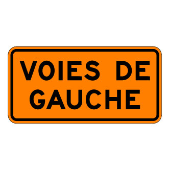 Le panonceau « Voies de gauche » (T-D-100-11-P-1) accompagnant le panneau « Signal avancé de direction des voies » (T-D-100-11-G) indique, à l’avance, la voie dans laquelle l’usager de la route doit se ranger pour effectuer une manœuvre à une intersection