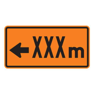 Le panonceau de distance et de direction (T-240-P-14-G), fixé au-dessous du panneau «Zone de travaux» (T-50-1), indique l’endroit où ont lieu les travaux ainsi que la distance pour les atteindre lorsqu’ils sont réalisés à proximité d’une intersection.
