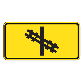 Le panonceau « Signal avancé d’un passage à niveau » (D-180-P-3) indique la configuration du passage à niveau lorsqu’un signal avancé d’arrêt doit être installé à l’approche d’un passage à niveau.