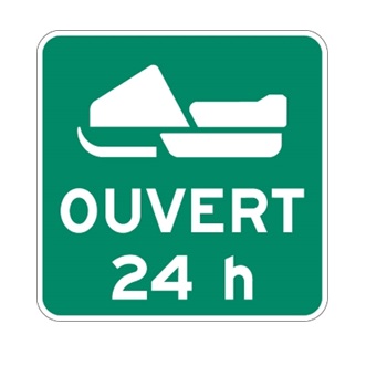 Les panneaux « Période d’ouverture » (I-376) indiquent que le sentier de VHR est ouvert à la circulation sans restriction de temps.