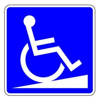 Ce panneau indique l’emplacement d’une rampe d’accès pour personne à mobilité réduite.