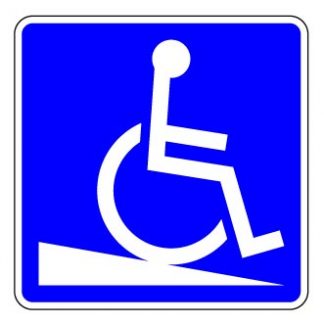 Ce panneau indique l’emplacement d’une rampe d’accès pour personne à mobilité réduite.