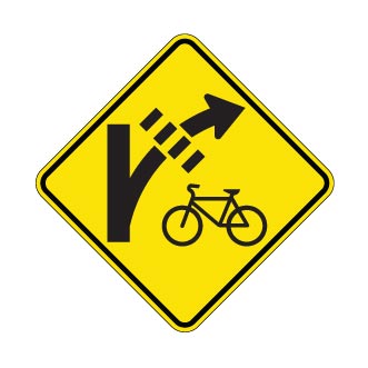 Le panneau « Signal avancé de passage pour bicyclettes dans un îlot déviateur » (D-270-31) indique, à l’avance à partir de la route principale, la présence d’un passage pour bicyclettes dans une voie de virage munie d’un îlot déviateur.