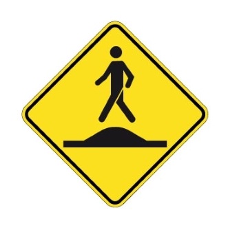 Le panneau « Signal avancé d’un passage pour piétons sur un dos d’âne allongé » (D-270-33-D) indique à l’avance la présence d’un passage pour piétons lorsque le passage pour piétons est situé sur un dos d’âne allongé ou un carrefour surélevé.