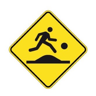Le panneau «Signal avancé d’un passage pour enfants près d’un terrain de jeux sur dos d’âne allongé» (D-270-34-G) indique un passage pour enfants près d’un terrain de jeux lorsque le passage est situé sur un dos d’âne ou un carrefour surélevé