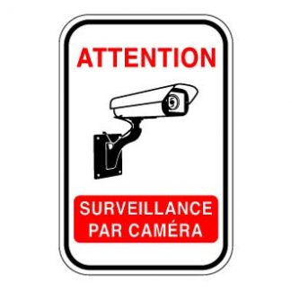 Ce panneau indique que le bâtiment est sous surveillance caméra.