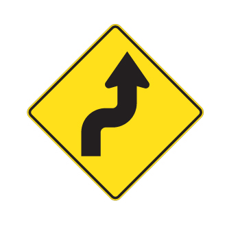Les panneaux « Virages » (D-110) indiquent la proximité d’une ou de plusieurs courbes sur un chemin public. Le panneau D-110-3-D indique un virage double débutant vers la droite.